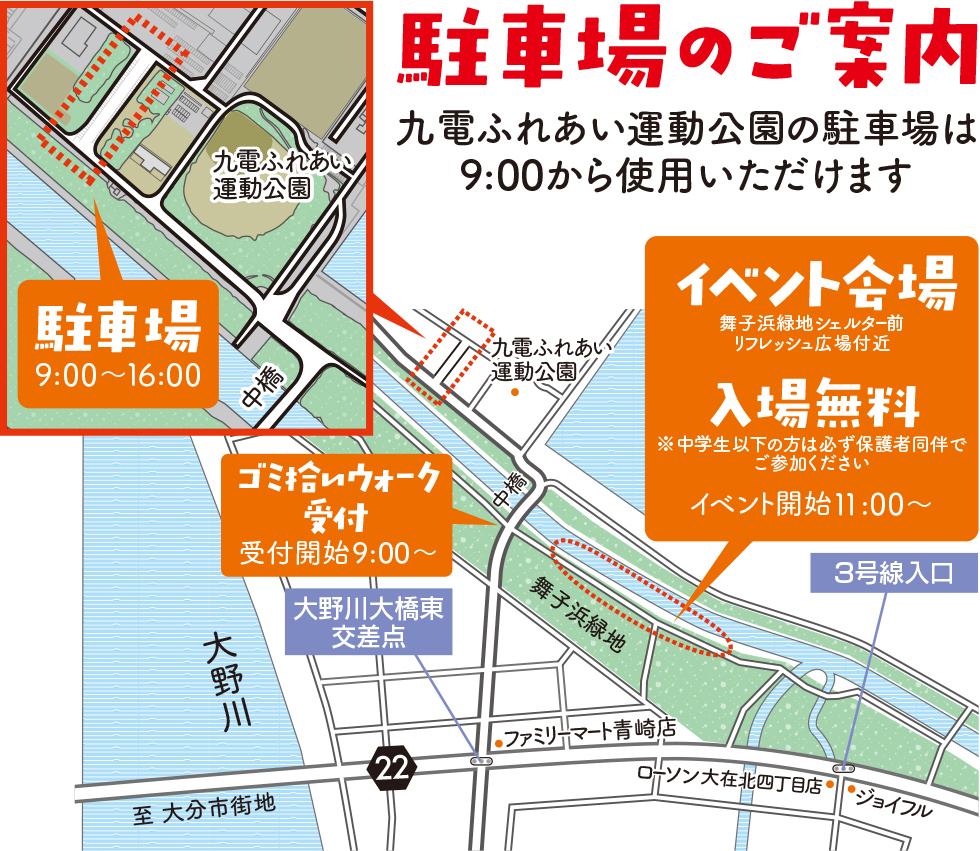 [集合場所] 大在大分港線(22号線)九電グランド入口(中橋たもと)