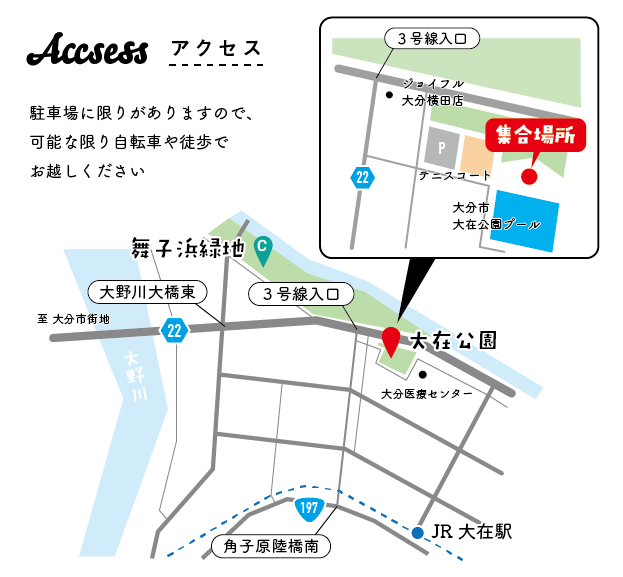 受付は大在公園9:00~9:30の間に、大在公園にお集まりください。